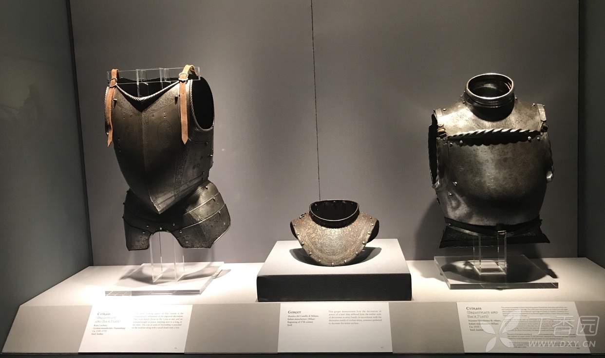 大约1530年至1560年的意大利半岛,米兰城内的菲利波•内格罗里(Filippo Negroli,1510-1591)为当时首屈一指的盔甲大师,其制作的雕花盔甲达到了同类产品的艺术巅峰(参见图17)。他和他的亲戚弗朗切斯科(Francesco,约1522-1600)、焦万•巴蒂斯塔(Giovan Battista,约1511-1591)、亚历山德罗(Alessandro,约1528-1573)以及焦万•保罗(Giovan Paolo,约1513-1569)等人一起经营着菲利波盔甲工坊,为神圣罗马帝国皇帝、乌尔比诺公爵、法国及西班牙王室制作了大批极为华美的礼仪用铠甲。这批盔甲已基本脱离实战,不追求极致防护,而将重心放置于细腻的浮雕和各式植物花卉图案,以及蚀刻的波纹,并且往往镶金带银。菲利波在盔甲装饰方面的造诣长期独步欧洲。直到十六世纪中后期,礼仪用的盔甲和马铠才有了堪与菲利波比肩的重量级作品。
