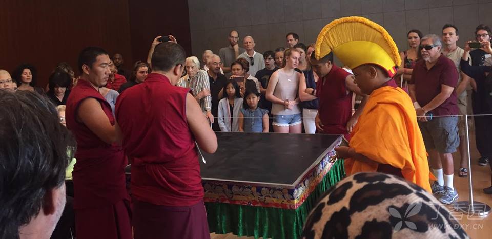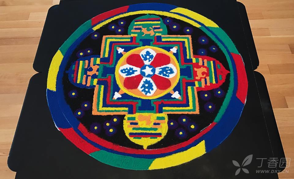 坛城沙画,在藏语中叫做的dul-tson-kyil-khor,意思是“彩粉之曼陀罗”。繁华世界,不过一掬细沙。从两千五百多年前,佛陀亲自教导弟子制作沙坛城开始,这门精致绝伦的宗教艺术,就历代相承毫无间断。而在十一世纪,由印度北传到西藏,保存至今。