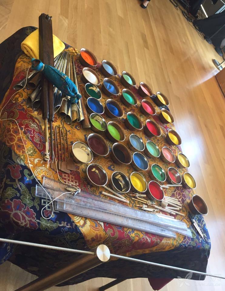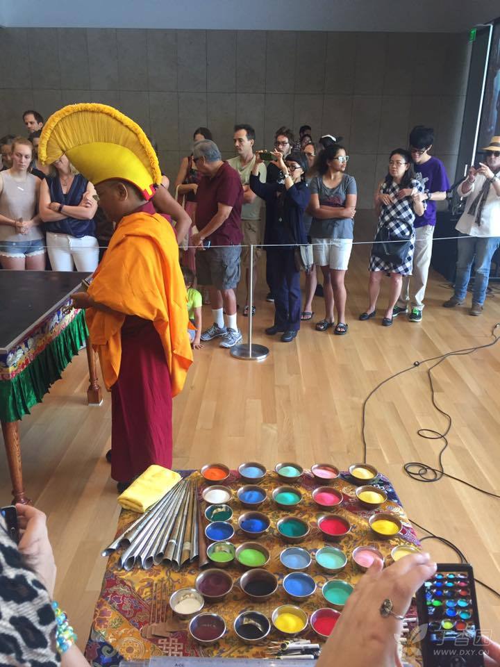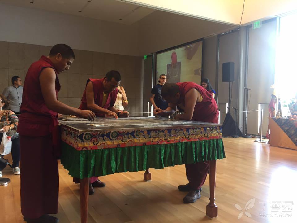 这三天陪一群哲蚌寺的喇嘛画 मण्डल,Mandala 曼荼羅,令人惊叹的细节。一个观众问我white tara 象征着什么。我一看不能让老外比咱更专业,于是从松赞干布文成公主一路讲Hu shuo 下去,编到尼泊尔公主和汉族公主的宫斗的时候我实在编不下去了,一回头看见背后站一排喇嘛若有所思的石化当场… 我吐吐舌头指着喇嘛对迷失的观众甲说,你问这个Monk嘛,然后跑了。这些喇嘛都很可爱, 嗯。