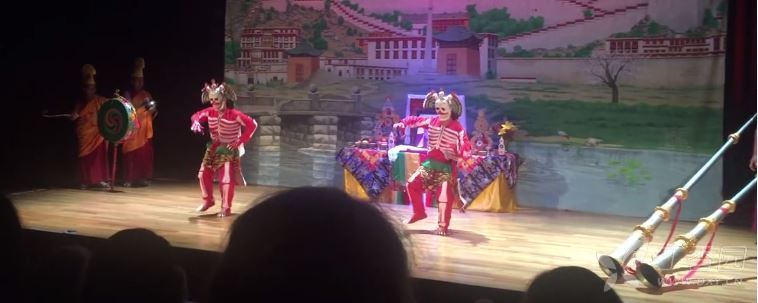 据说,公元7世纪,佛教从印度、尼泊尔和唐王朝传入西藏的过程中,藏族僧侣将西藏上风舞、苯教巫舞与印度瑜珈派面具神舞相结合,创造了一种以"驱鬼镇邪'伪主旨的宗教舞蹈,并在兴建桑耶寺的奠基仪式上表演获得成功。这便是原始"羌姆"(藏语蹦跳之意)的雏形。