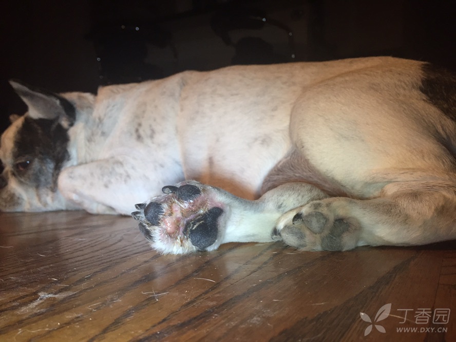 摸摸进入7月份就吃的很少,精神很差。13早晨已经无法独自下楼上楼,晚上开始端坐呼吸,烦躁,心功能四级,也不让人碰,一碰就咬。等他稍微躺下的几分钟看了一下,肿瘤扩散到脚,也已经表皮破溃了(前天检查还没有破)。这个有青光眼白内障风湿哮喘皮炎中风肺心病和肿瘤扩散全身的狗走到它的终点。