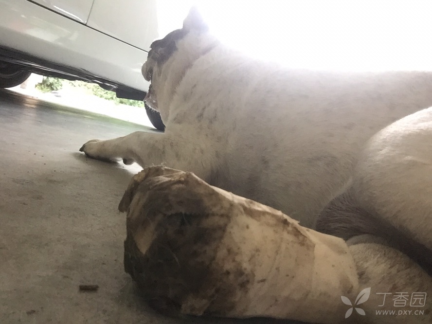 7月15号晚上邻居和我几个琢磨了一下,上干细胞处理创面了。结果周日早晨这货一泡尿华华丽丽的全部尿在纱布上,然后三条腿蹦到泥里开始滚……
