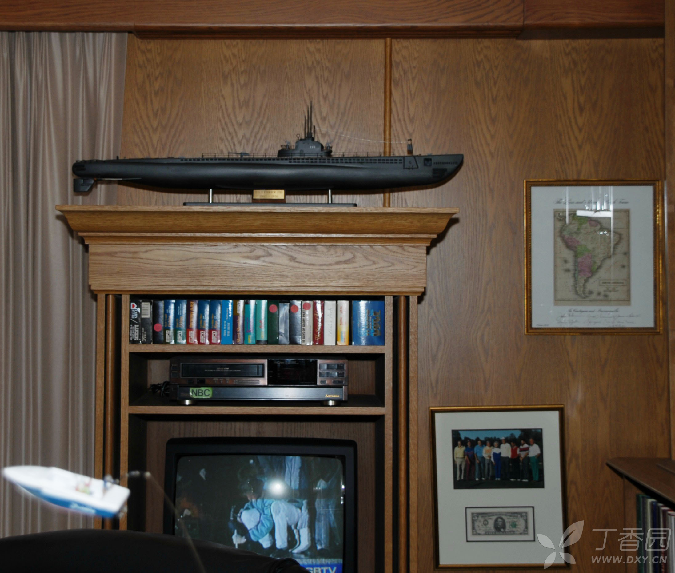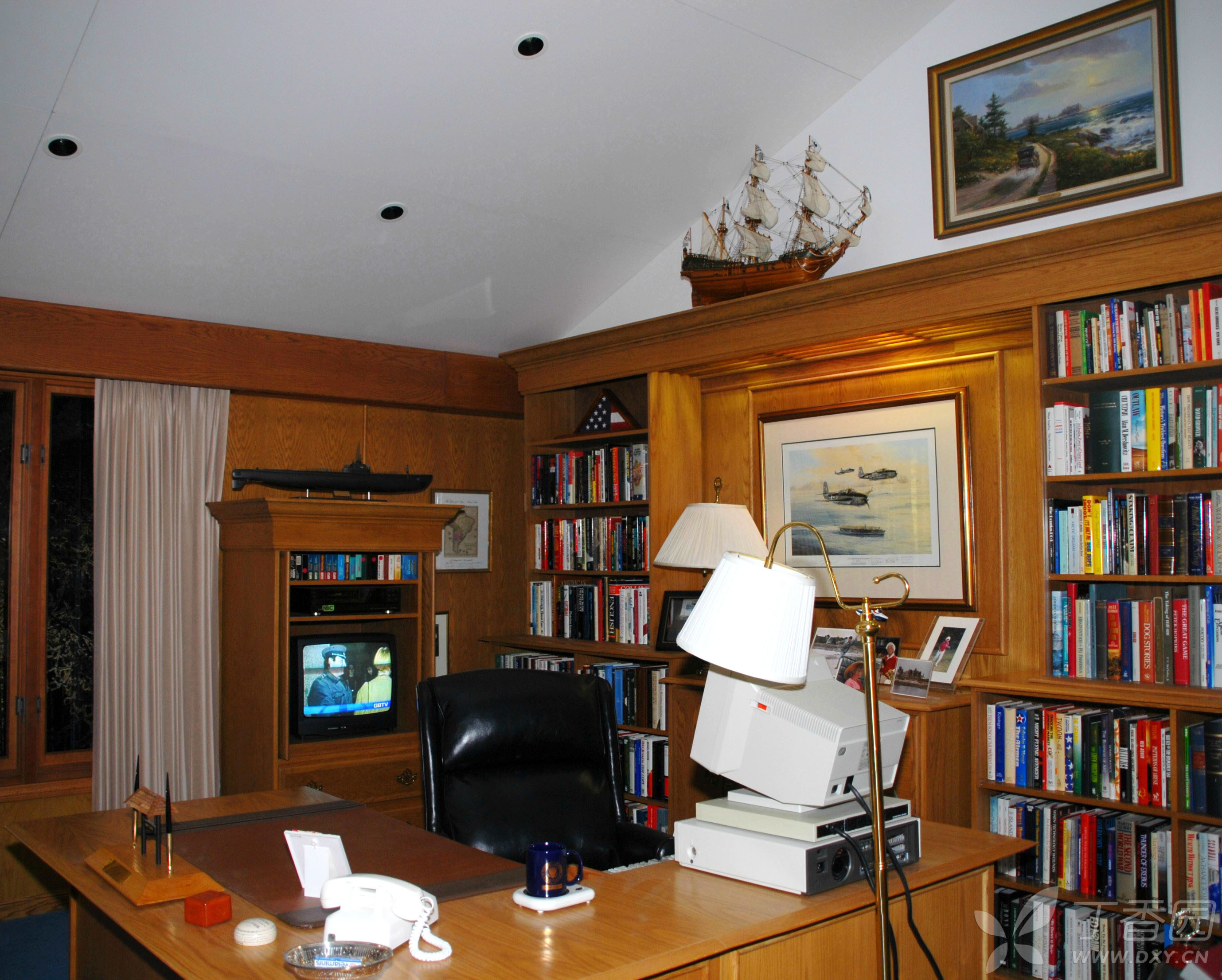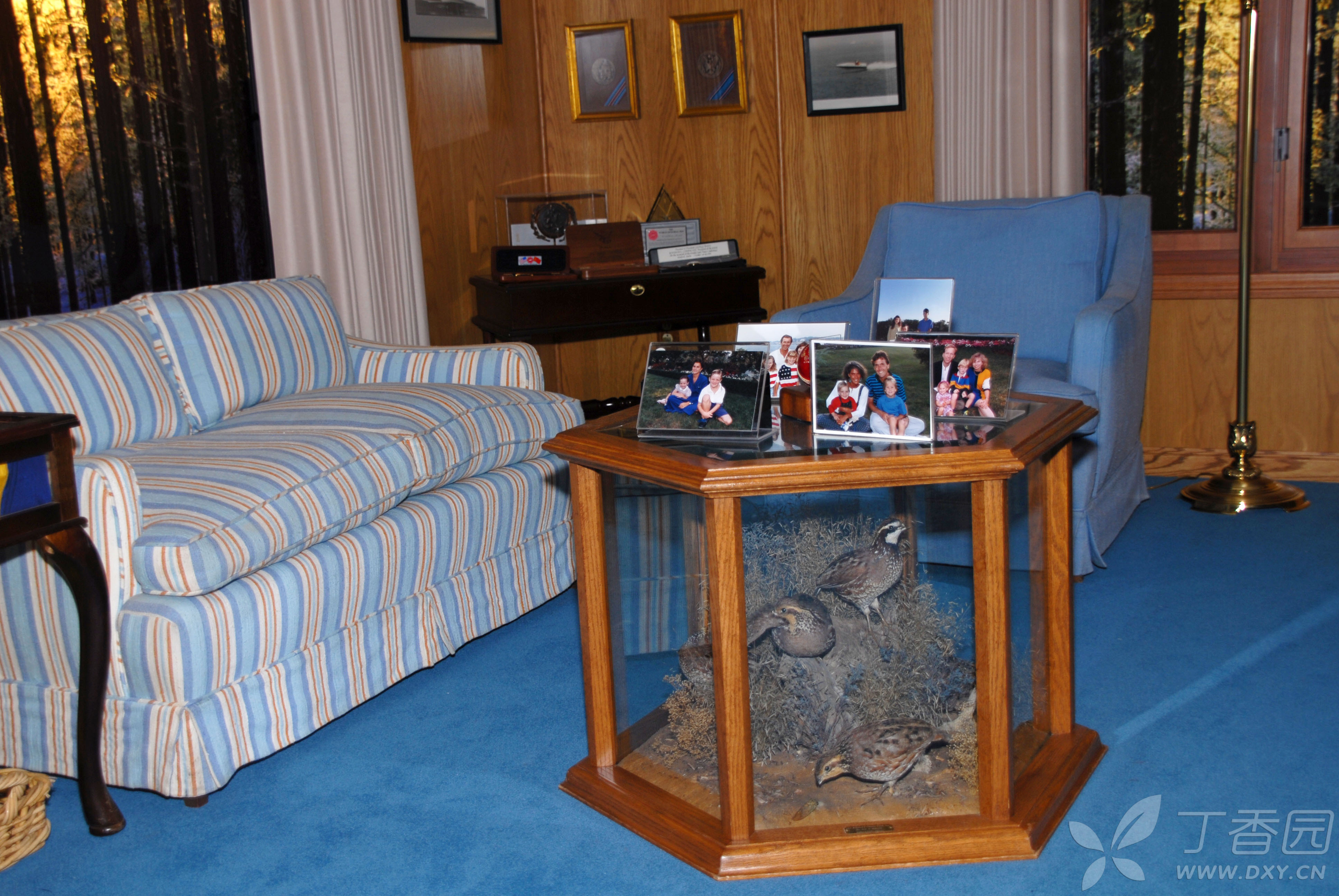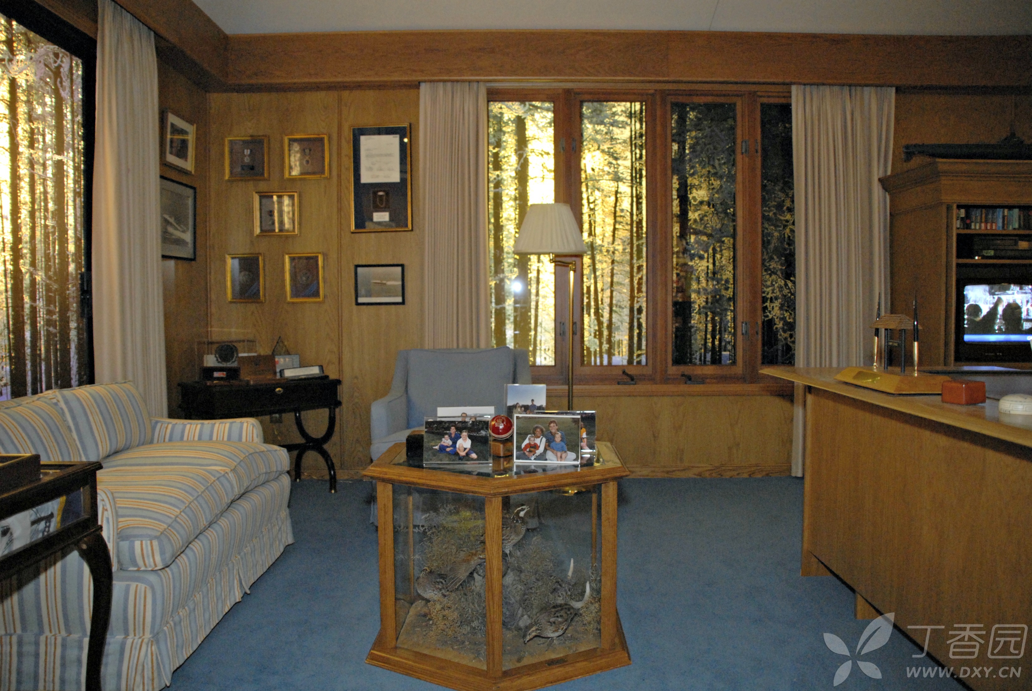 当然,在馆中展出最多的还是老布什作为美国总统时的东西和场景。比如在馆中展出了一幅巨大的老布什与幕僚们在白宫办公室的画像放在醒目位置。