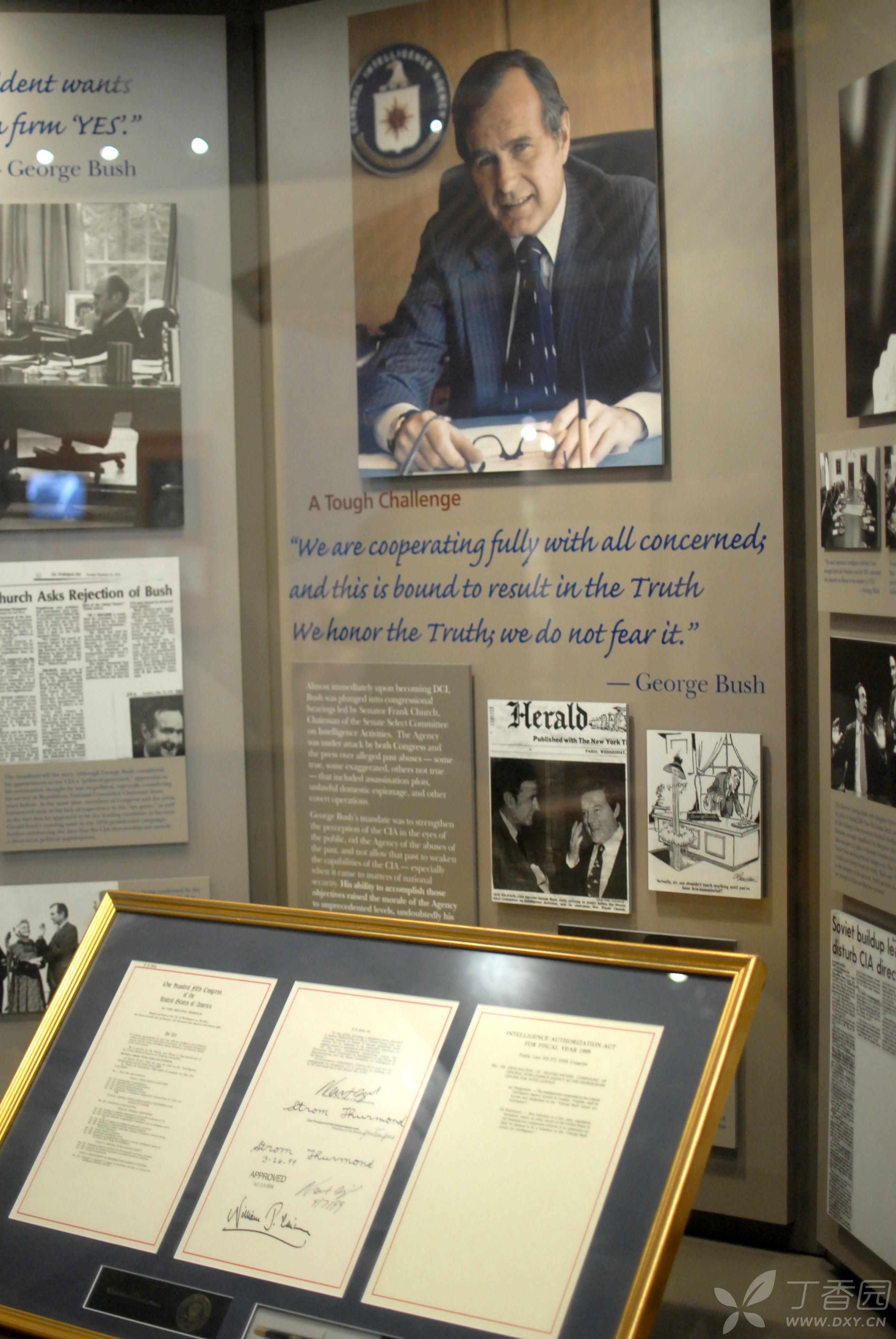在图书馆内展出的展品还包括老布什从1924年到现在整个一生中作为儿童、军人、商人和政治家积累下来的历史文物和照片。特别是在其任内发生的苏联解体、海湾战争等历史事件中,总统是如何应对危机和挑战的详实记录。馆内的大量文件资料除了部分涉及国家机密的部分外,也对外开放。想了解那一段历史,参观该图书馆还是非常有意义的。