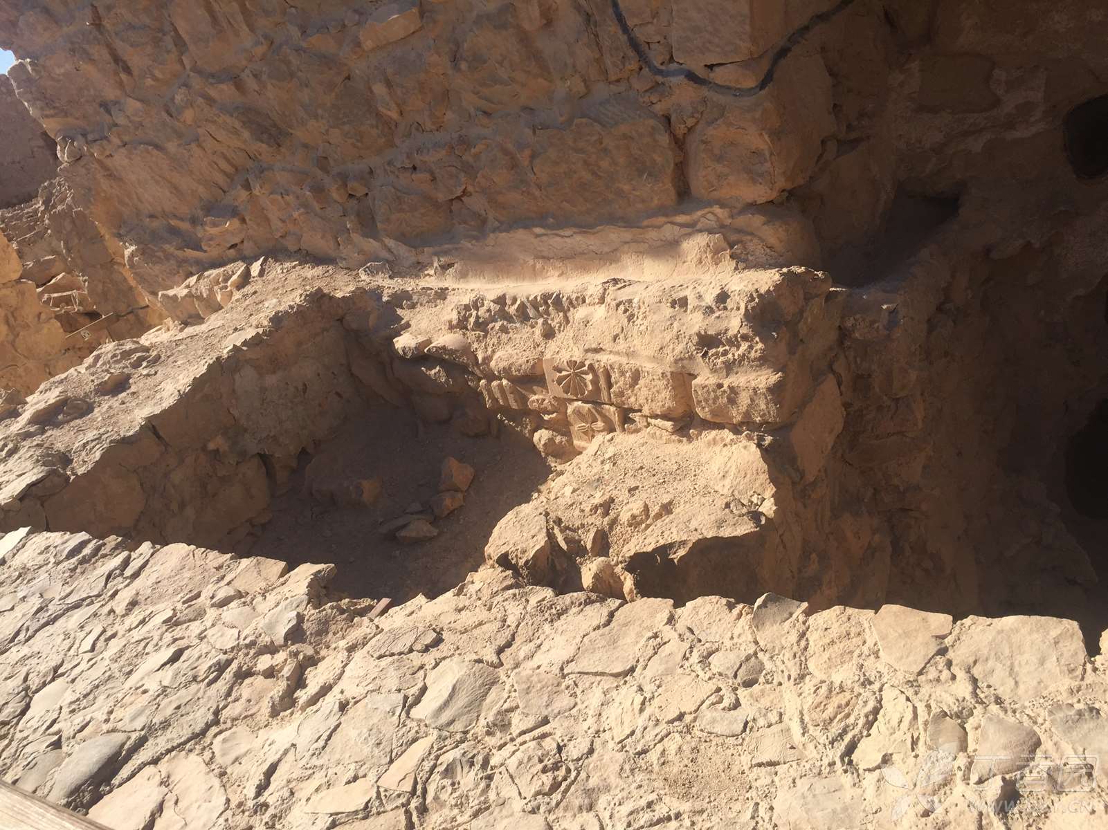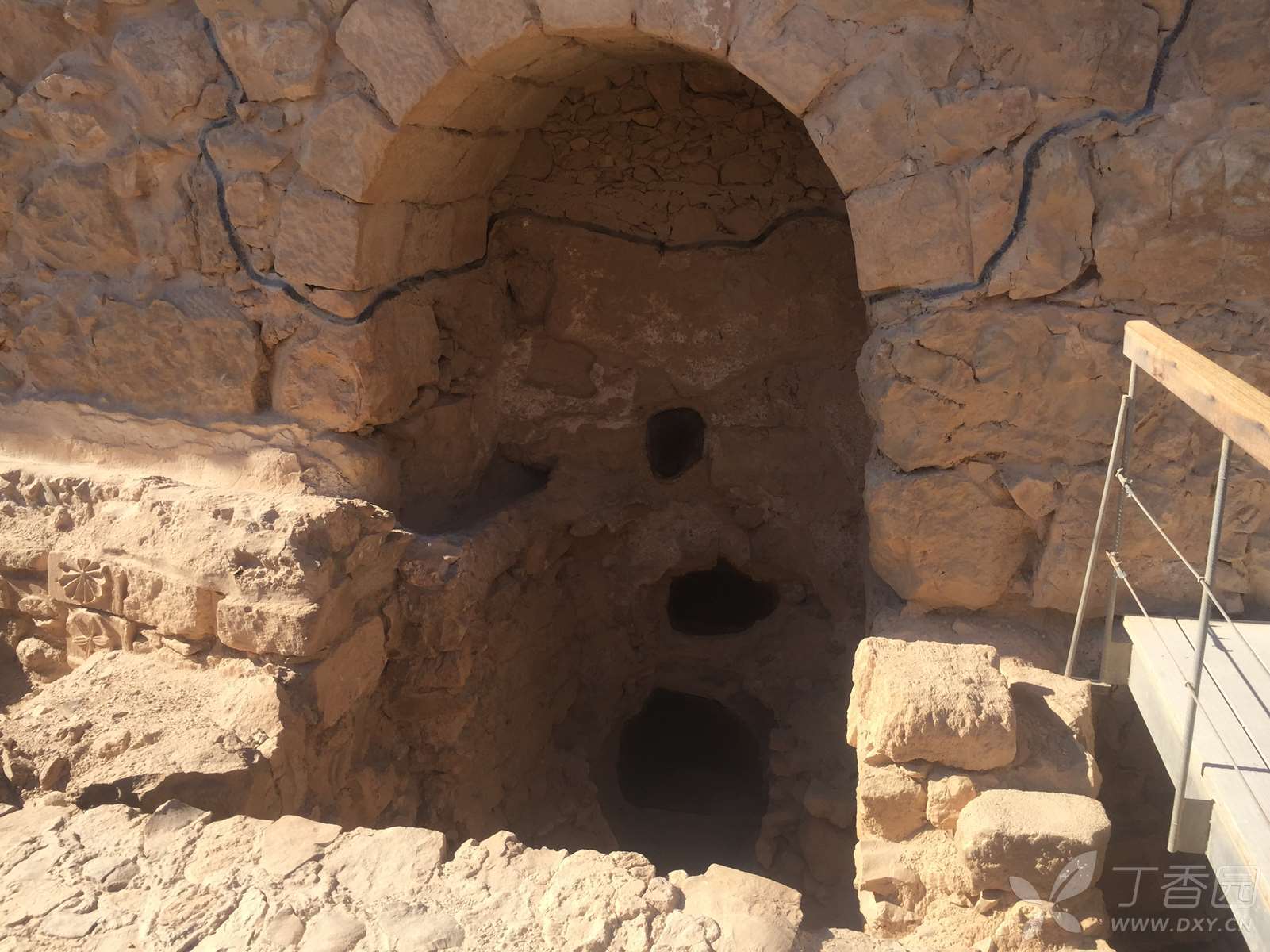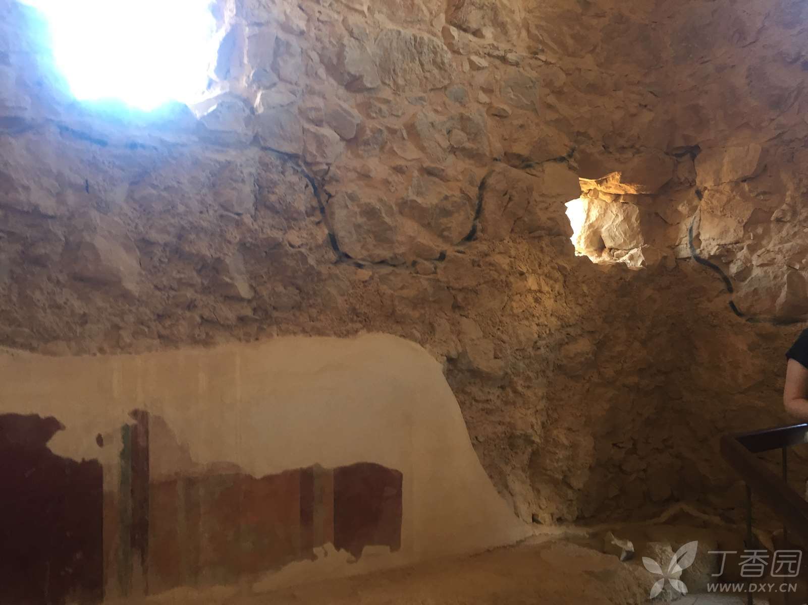 希律王山顶宫殿如今唯余断壁残垣,但凭借想象,我们依然能构筑出当年的奢华与坚固。宽大的屋舍,巨大的粮仓。土耳其浴室中,当年精美的装饰仍有残迹,烧火加热的痕迹也宛然。坍倒的地方,人们也只是将原来的模样复原,并不修复成所谓的旅游景点。被黄沙淹没的三分之二城堡都被发掘出来:拱门、望塔、浴场,装饰着马赛克的宫殿,还有畅荡无阻,铜笛一般锐利干爽的风