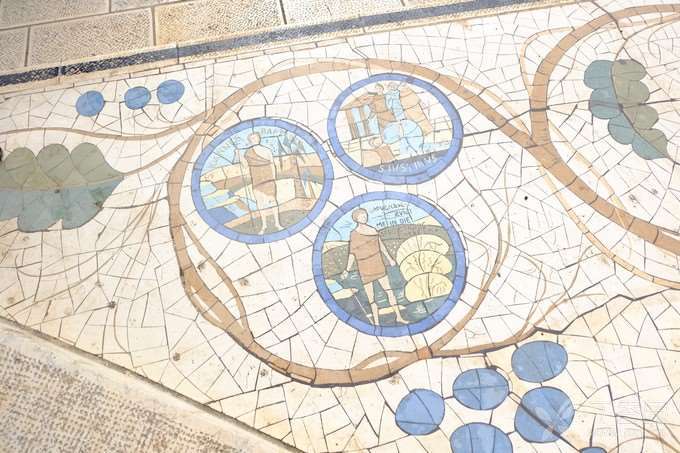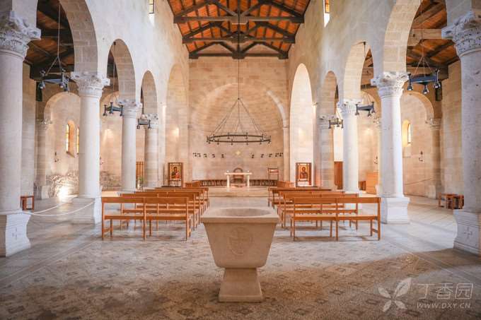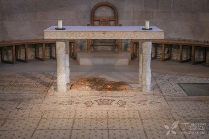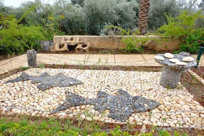 在拜占庭帝国的年代,原址建了一座修道院,后经毁坏重建,再毁再建,达数次之多,如今则称为「五饼二鱼堂」,堂前拜占庭式的马赛克石地,始终没有损毁,石地上所刻的「五饼二鱼」,成为了旅游景点。