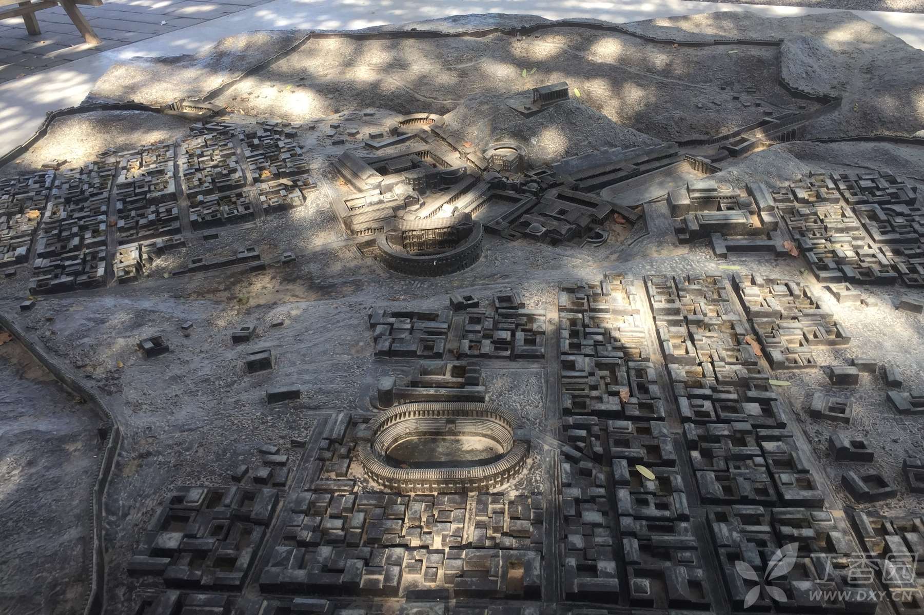 这些柱子当时地震都倒了,文物修复者才树立起来的