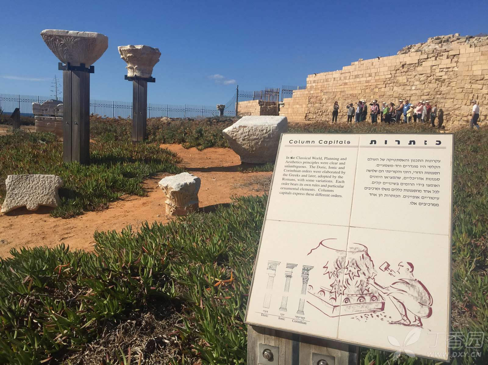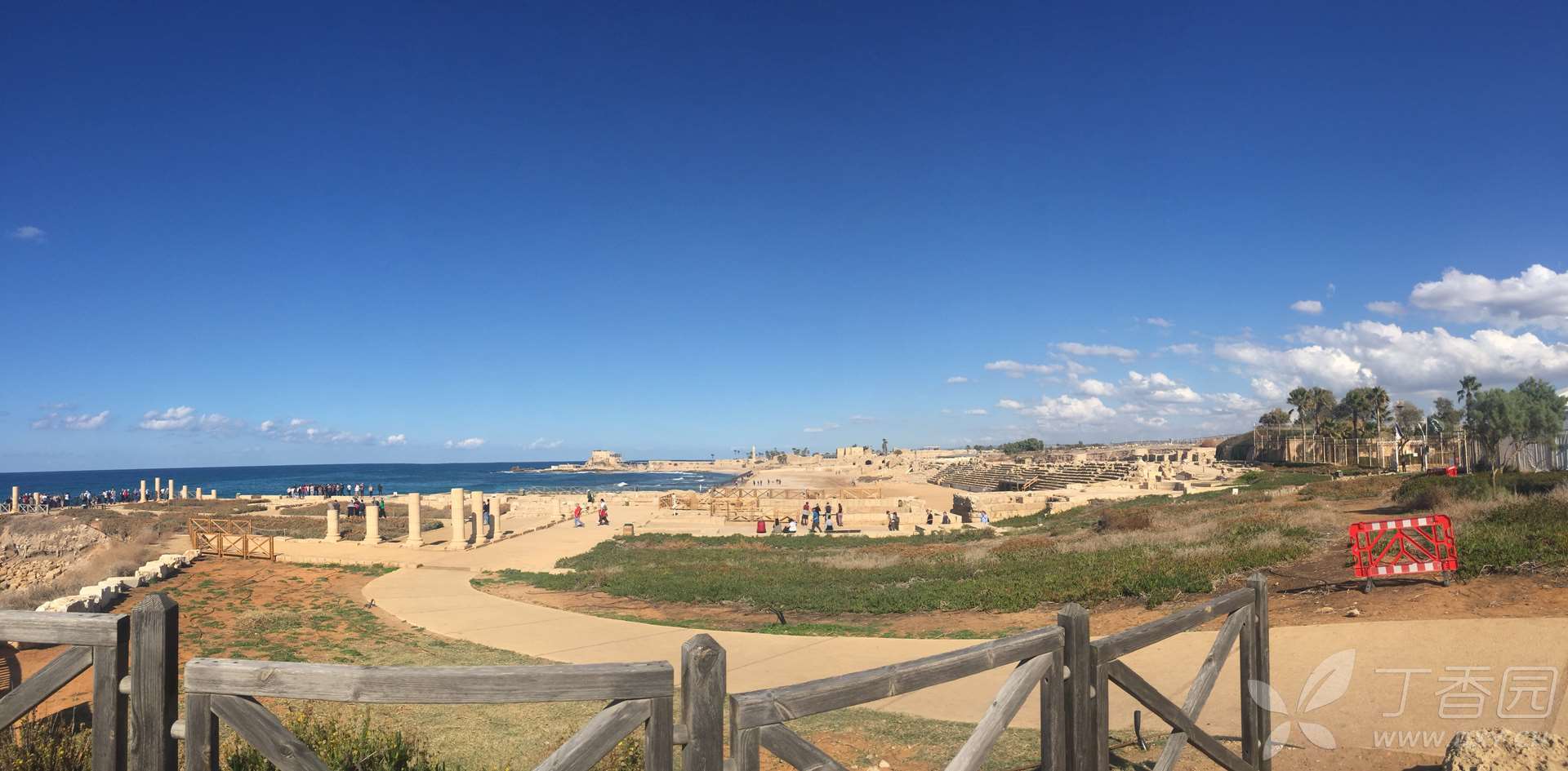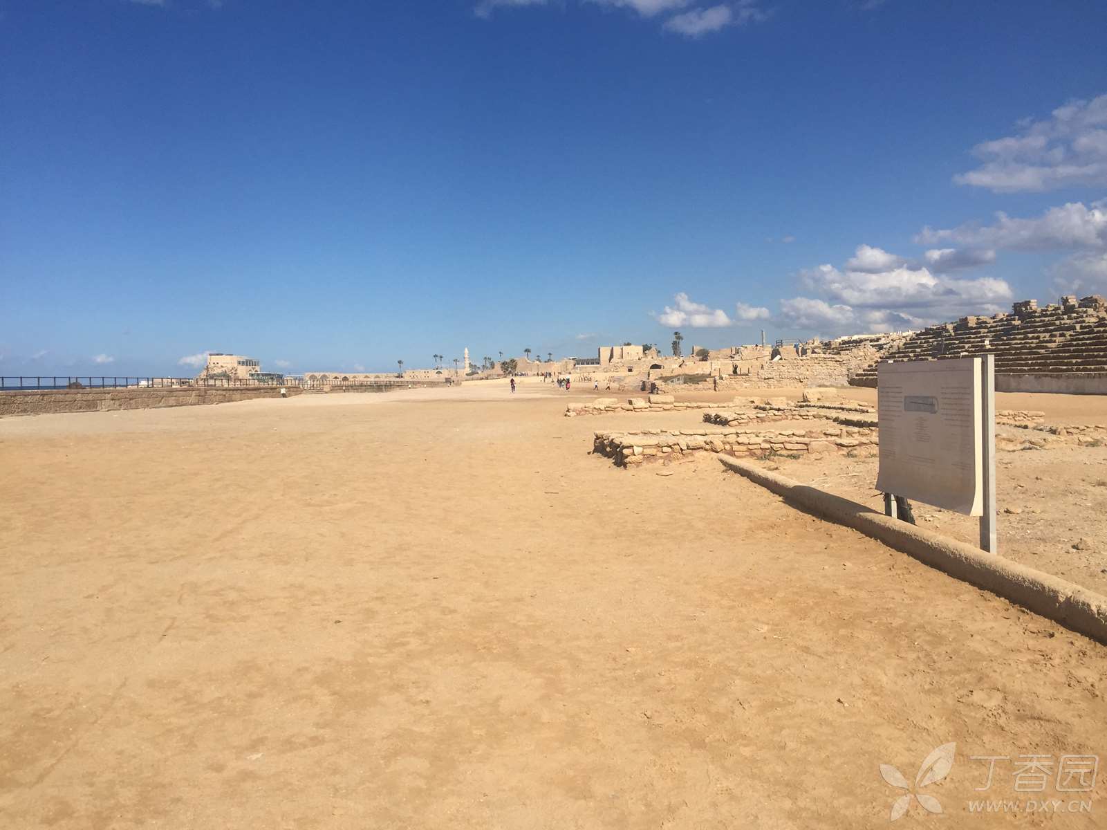 古罗马剧场。剧场面海而立,规模庞大,采用的是希腊风格,舞台前半圆形贵宾席地板上,装饰着绚丽的花草和鱼鳞图案。目前,整个剧场已得到较好的修复,每逢夏季,海风习习,参加在这里举办的音乐会或歌舞晚会,成为以色列人喜爱的一项文娱活动。