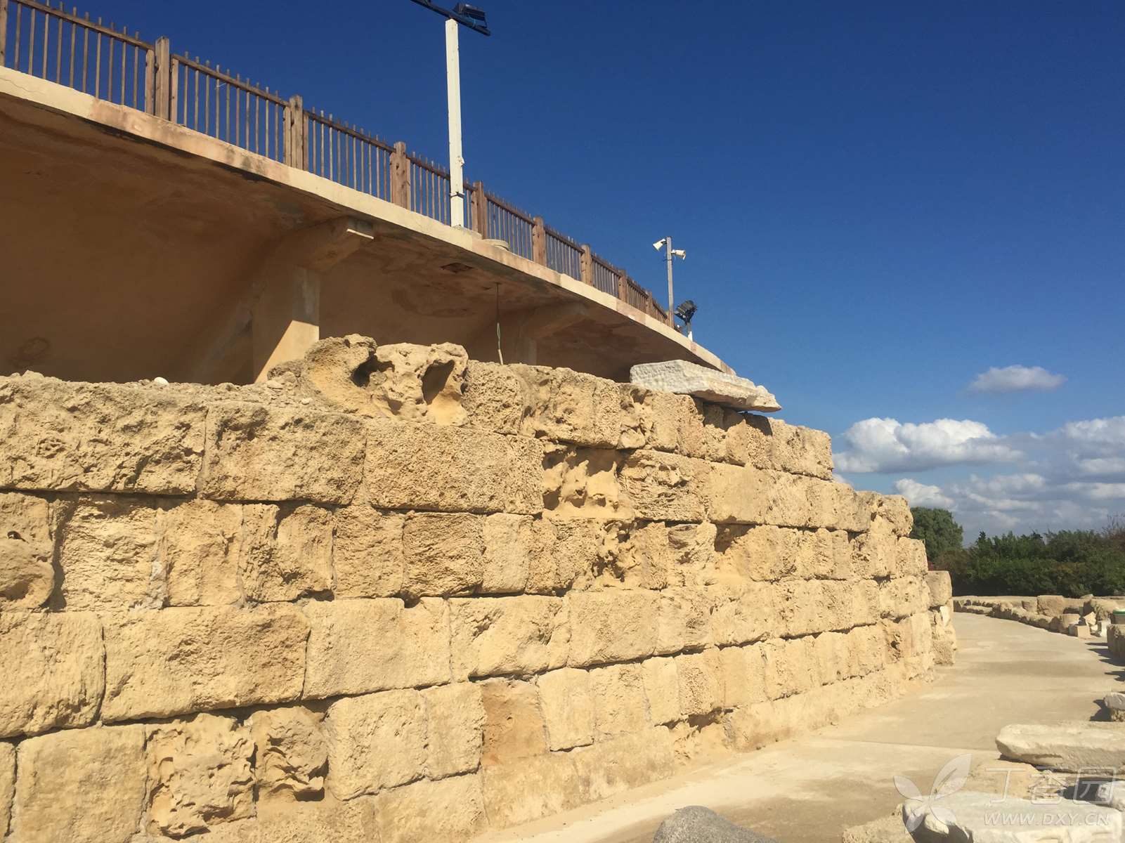 希律王当年为了解决供水问题,营建的罗马式高架输水渠,从城北6公里远的卡梅尔山下收集泉水,然后引入城内供居民使用。非常宏伟也非常美丽的一个工程。为了保证城市的用水和城市的清洁,他还特意修造了供水和排水系统,使清澄的饮用水源源不断地流到城里,也使城里的废水得以通过地下渠排入海中。