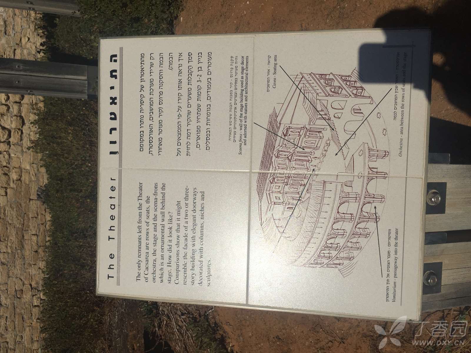 961年意大利的考古学家安东尼弗罗法(Antonio Frova) 在此剧场里发现了一块石碑,上面刻有罗马总督彼拉多(Pilate) 的名字,而耶稣就是被彼拉多审判、定罪及钉十字架。因此,我们来到该撒利亚,不要错过观看这一块刻有彼拉多名字的石碑。 (注:原来的石碑被保存在耶路撒冷的以色列博物馆,现展示在剧院前的为复制品)。