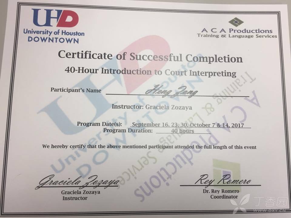 休斯顿大学的法庭同传毕业