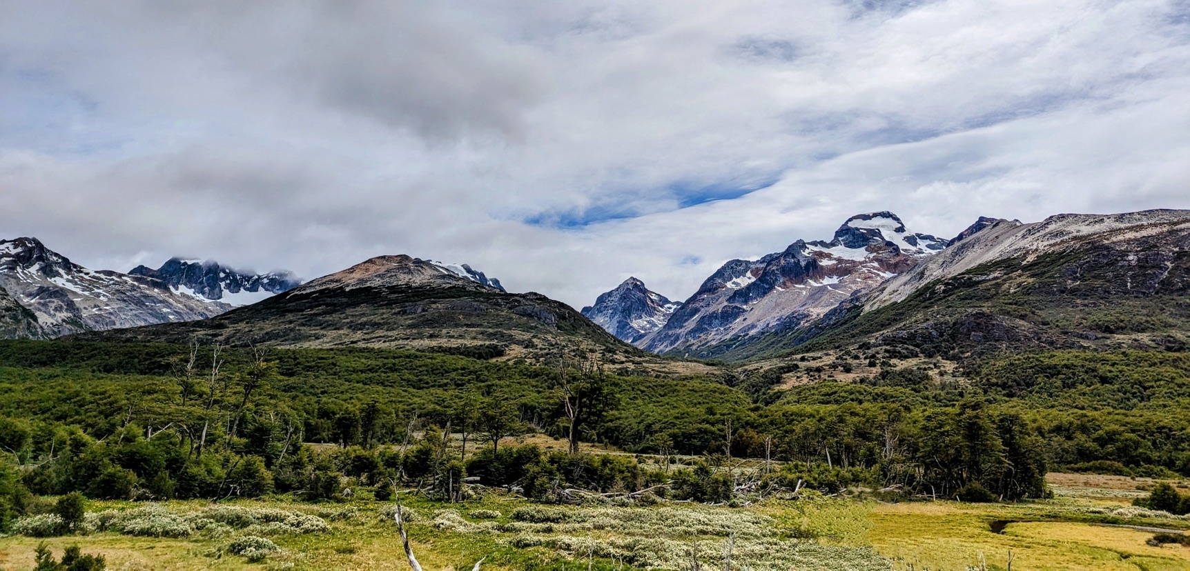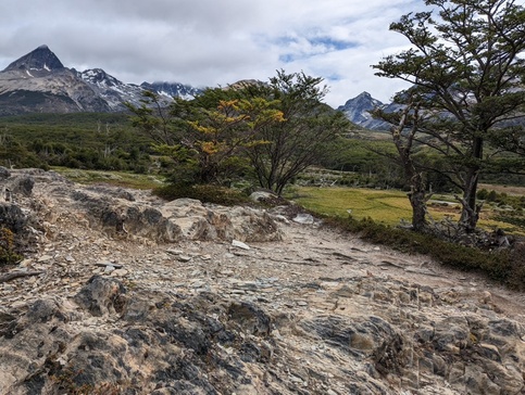 今天主眷顾,终于停了雨和冷。太阳出来了。我们跟船上了旅游项目。走的是 Reserva natural Valle Tierra Mayor 出发前说这个团需要走上下不平的山地,膝盖不好的人建议不参加。我这个膝盖平时上台阶可以,下台阶就尽量电梯或者只能一条腿凑活。可是我在船上憋了太多天,旺盛的精力需要倾泻。我想总共就大半天的行程。还要刨去路上来回开车 2 小时。实际走没有多久,看行程还有吃饭休息的时间。那它难再难又能怎样?然后贴了膏药带好护膝,按照要求,防风防水的衣服裤子,墨镜 手套 帽子 防晒霜 雨伞 多余的袜子 水都准备好,坚持去了。这是它的出发要求。真的字字精华,没有废话。
