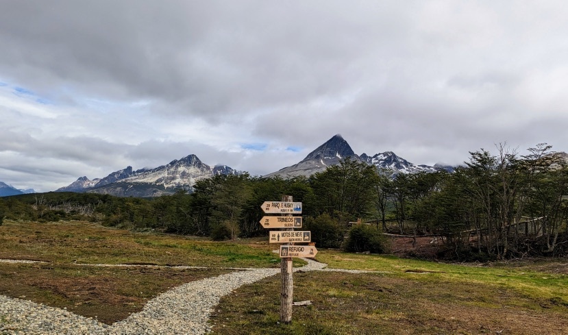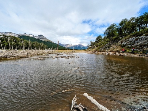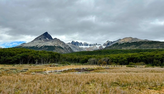 是阿根廷大火地岛上的国家公园,由火地省负责管辖,该园位于该国南部的巴塔哥尼亚森林和安第斯山脉生态区,[1] 属于亚南极(英语:Subantarctic)森林的一部分,面积 630 平方公里。1960 年 10 月 15 日根据 15554 号法令成立,1966 年扩大园区面积。火地岛国家公园也是阿根廷建立的第一座海岸国家公园。图一的桥应该就是吴军老师的火地岛森林公园的照片出现的那个桥了。真没想到这里能有个呼应。这里山脉的雪线只有 300-500 米,很多人看我的照片以为海拔很高。其实海拔很低算是讨巧了。雪线上的山顶硬朗线条尖锐,是明显的冰蚀地貌。虽然是盛夏,峡谷里开满了鲜花,但是抬眼望去可谓冰川的痕迹处处可见。该国家公园拥有瀑布、森林、山脉及冰川,法尼亚诺湖和岩湖(西班牙语:Lago Roca (Tierra del Fuego))的部分面积也包含在其范围内。连结了恩塞纳达(英语:Ensenada, Buenos Aires)湾和拉帕大亚湾(西班牙语:Bahía Lapataia)的沿海道路(Senda Costera),是园内较受欢迎的步行路线。