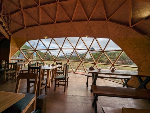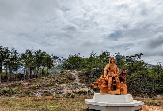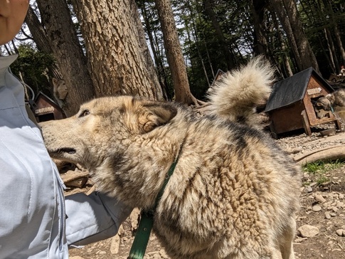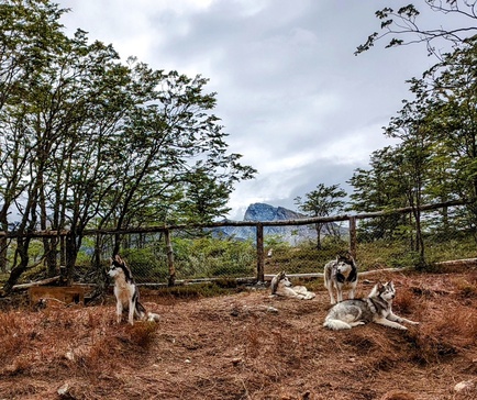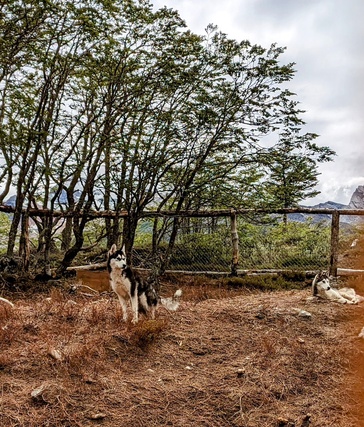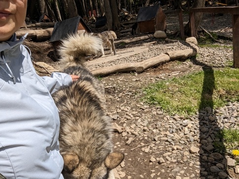 这个地方很美,但更有名的是冬天的雪撬活动。山脚下的休整站(我在这里吃了当地的苹果派和三明治,喝了当地的一种叫做 El Bohio 的茶)也是给南极科考的雪橇犬的培育训练基地。里面有 30 条雪橇犬,血统有哈士奇 (精力好耐力好)西伯利亚雪橇犬 狼犬(狼狗混血)阿根廷雪撬犬 (速度快)这里的狗在每一年的 789 三个月冬季拉雪橇,现在 12 月的夏天就每天一次,一次一个多小时,由主人带着开车摩托车,这群狗在山上自由的奔跑玩耍到河里游泳嬉戏,差不多 30 公里的路程。这个过程他们彼此游戏,彼此成为团队,性格适应,地位确立。到冬天就是一个成熟的雪橇团队。狼犬可以适应零下 80 度的极寒,有三层体毛,耐力和力气都超乎异常。现在是它们换毛的季节,我逮着一条狼犬互动,挠耳朵摸下巴的讨好它。最后薅了满满一把狼毛,满意的保存下来,做为这次旅游的纪念品之一。