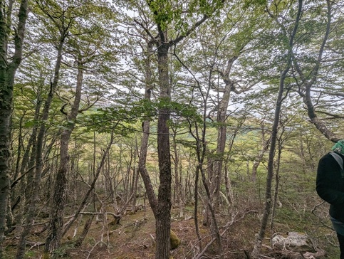 春季,万物萌发,山谷里的花大片大片的盛开,空气中是蜂蜜的味道。土里面的放线菌之类的细菌也从冰雪中复苏,再温暖湿润的环境中开始繁殖,让土地中充满了产生的气体。踩上去就像踩在海绵上,非常柔软充满弹性。进林,这里土地里湿滑,整个山体都是坚硬的石山,只有不到半米的表层土。加上天气在绝大多数季节都非常寒冷,大风肆虐。所以这里的树长得非常慢非常难。胳膊粗的树就要 4-6 年。腰这么粗的树就要上百年。但是一阵大风,上百年的树木就在瞬间倒下变成一段枯木。枯木随处可见,枯木边有很多小指头粗的嫩枝芽从土里冒出,等待开始它们的精彩百年。我正好奇的看这里的蕨类,苔藓,小灌木,花…… 发现野蜜蜂围着我玩命飞,想起来出门前手欠,涂防晒霜的时候顺手也用了香水。亚南极森林的植被以南方假山毛榉(英语:Nothofagus dombeyi)和矮假山毛榉(英语:Nothofagus pumilio)为主。而温带森林巴塔哥尼亚安地斯森林(英语:Bosque Andino Patagónico)则分布在园内海拔 600 米(2,000 英尺)以下的山坡地,海拔 600 米(2,000 英尺)以上的植被主要由小灌木及一些禾本科植物所组成。国际自然保护联盟报告显示了园内的其他树种矮假山毛榉(英语:Nothofagus pumilio)林、桦叶假山毛榉(英语:Nothofagus betuloides)林和南极山毛榉(英语:Nothofagus antarctica)林,其他植物则包括麦哲伦小檗(英语:Berberis microphylla)、筒瓣花(英语:Embothrium coccineum)、冬木(英语:Drimys winteri)、岩高兰和一些苔藓植物等 [4],另外酸浆和一些寄生植物则攀藤或寄生在树枝上,园内多个小型森林中也发现了桂皮。此外,园内普遍分布泥炭沼泽,由潮湿山谷中的泥炭藓和油水草(学名:Aquatic grasse)所组成,特性是温度低且具有移动缓慢的酸性水体。国家公园内发现的花卉品种包括智利冬青(英语:Gaultheria mucronata)、小檗等,林木下则长有高山矮盘灌丛(英语:Krummholz)、血齿菌(英语:Hydnellum peckii)和小型链束植物。比格尔海峡和拉帕大亚湾(西班牙语:Bahía Lapataia)西部常可发现黑灌木、筒瓣花,该地亦生长具有巧克力香味的玉露菊(英语:Nassauvia)。