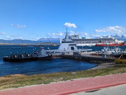 火地岛 Ushuaia 乌斯怀亚作为海军基地,曾在 1983 年的英阿马岛战争中发挥过作用,现在海湾仍可看到不少阿根廷的海军舰只停泊于此。作为人类居住的最南端的城市,出了乌斯怀亚港口 1000 海里,就是渺无人烟的茫茫冰河南极洲。它特殊的地理位置也使它有了另一个名字 —— 世界尽头。