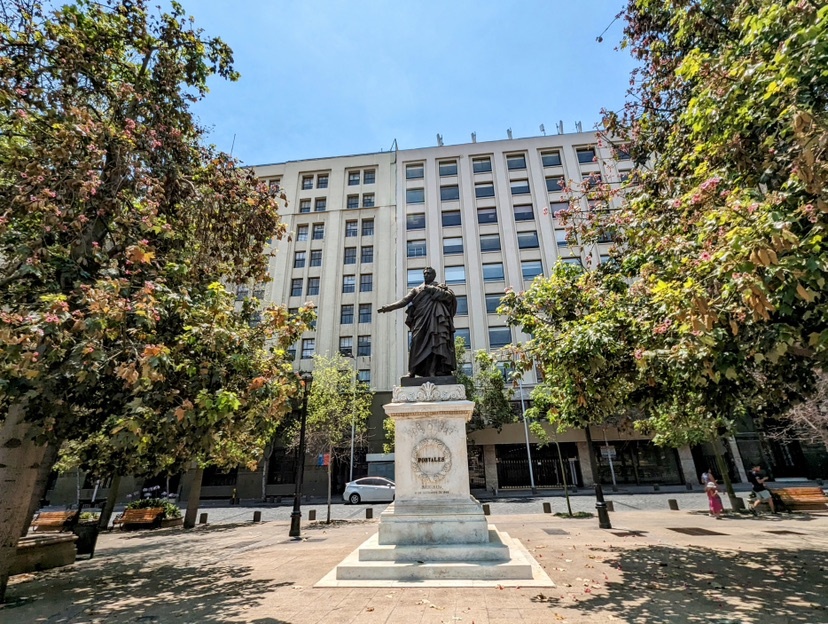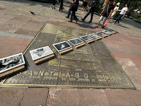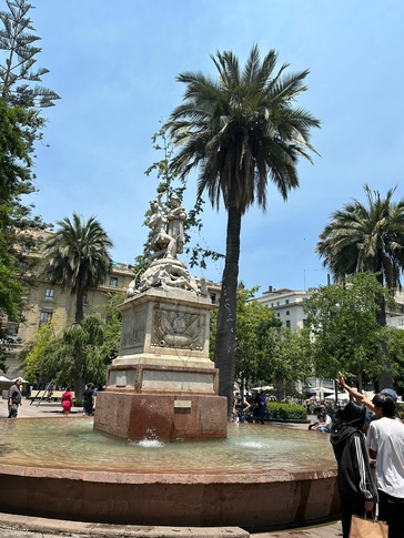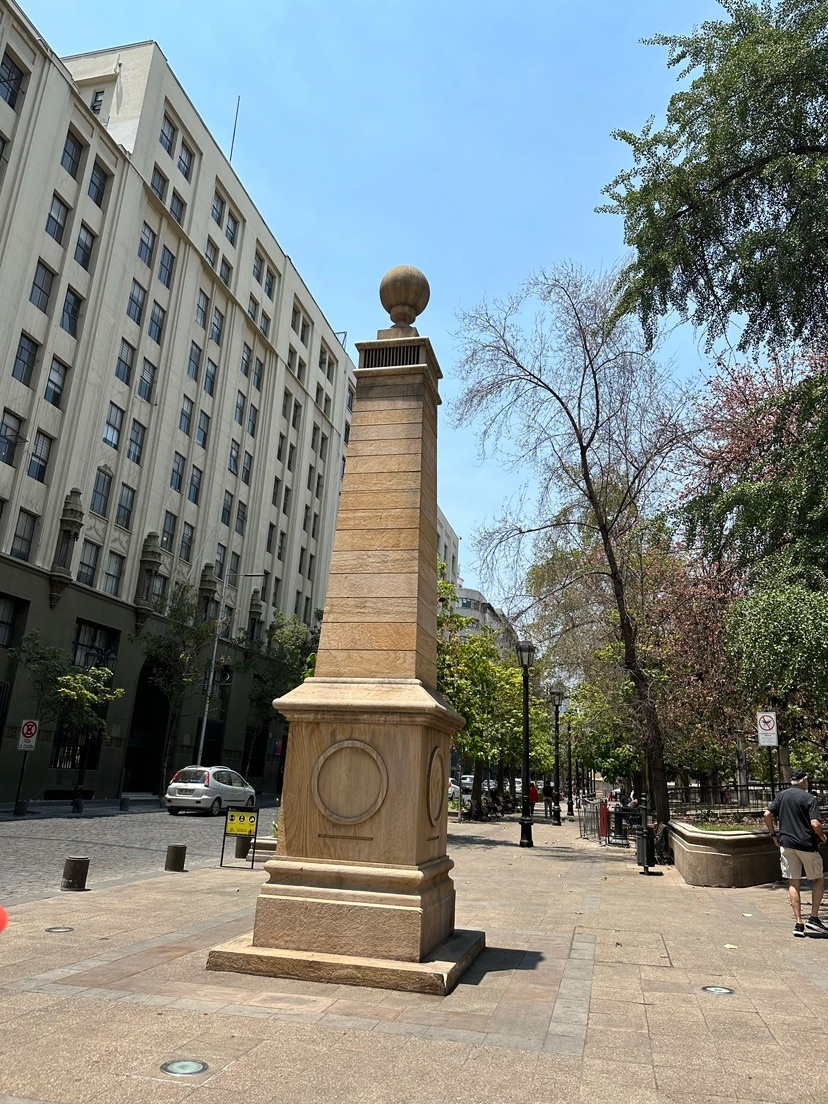 1541 年佩德罗・德・瓦尔迪维亚(Pedro de Valdivia)在圣地亚哥建城,随即下令在城市中央修建武器广场。根据西班牙惯例,在美洲建立的城市的广场选址需平坦、空旷。最初广场有绞架,象征着皇家法权。通常,广场周边建筑为教堂、皇家法院、国库、市政厅、监狱以及权贵们的住所。