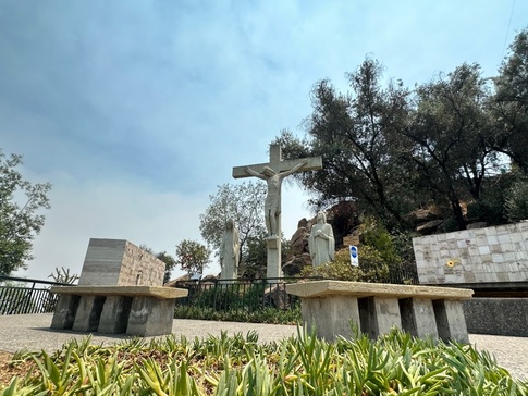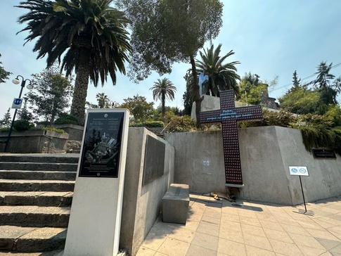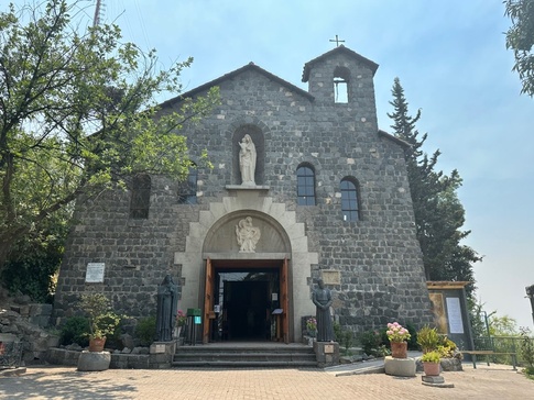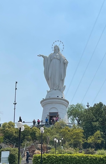 圣母山上有座小教堂,虽位于人声鼎沸的旅游名胜景点,却无损庄严肃穆,把喧嚣隔绝在教堂门外。智利是信仰天主教的国家,教堂众多,昨天分享的主教堂有它的宏伟,这个小教堂有它的出尘和精致。朝圣地所在的土地是由雷科莱塔的多明我堂和圣地亚哥的加尔默罗会圣德肋撒修院捐赠的。朝圣地于 1904 年 12 月 8 日奠基,1908 年 4 月 26 日正式落成。1987 年,教宗若望保禄二世参观了朝圣地。