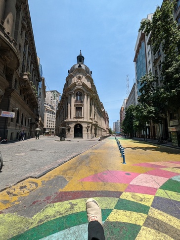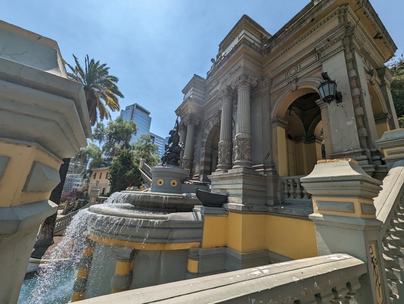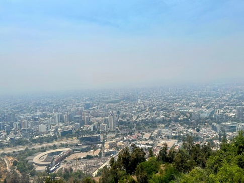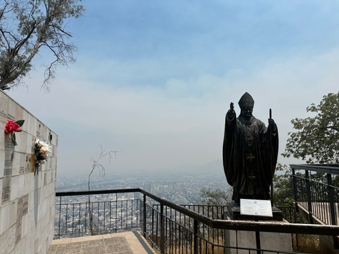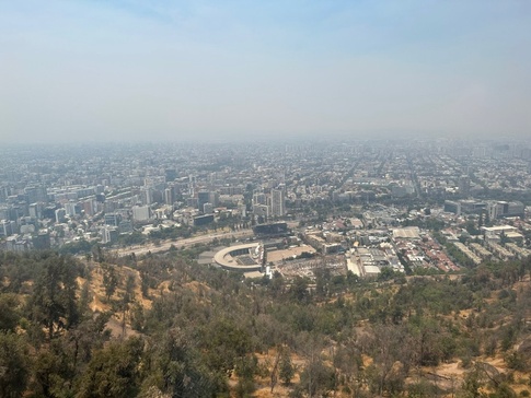圣・克里斯托瓦尔山上植被丰富,丛荫茂密,也称为都市公园,是市民休闲健身的好去处。每逢节假日,人们或三五成群、集结于树下溪边练习瑜伽、太极拳、跳健身操,或举家出游、围坐在草坪上野餐,可谓其乐融融,逍遥悠哉。山上还有多处观景台,可将圣地亚哥全景一览无余,尤其在冬季黄昏,悠远的晚霞、雪山与繁华的城市灯火交相辉映,别有一番情趣。圣・克里斯托瓦尔山占地 712 公顷,海拔 880 米,比市中心武器广场高出 323 米。圣母山看到的贫富差距在网上的其他文字图片描写蛮多的。其实根据我走的感觉,这里可谓是相对最安全的地方。走到后来看到其他南美国家的贫富差距更是触目惊心… 而且这些地方很少可以查到其他游客的文字记录。似乎从游客到当地人,对相对富裕区身边就是极端贫困的生活都已经视而不见无所谓了。甚至当地要饭的乞讨的,他们自己也觉得天经地义理所当然… 可见正视问题承认问题是解决问题的第一步。起码这里还公开承认有贫富差距的问题。
