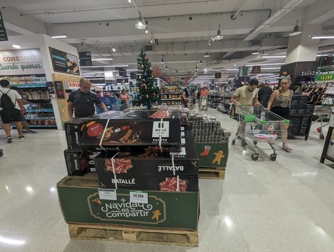 我出门喜欢逛当地菜市场。但是之前手机上找到跑过去看了几个都特别小,和便利店一样,我特别不满意。提着菜篮子跑过去就拿几把蓝莓回家… 于是,跑到当地最大的购物中心摸到地下二层的超市,和当地人一起抢了一波圣诞新年节日促销…