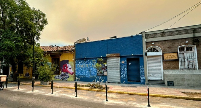 缆车开到山的那一边的时候,脚下的绿地公园啥的也都变成破破败败的建筑了。但是下车的地方还是很安全的区。算事文艺青年集散地吧。虽然是涂鸦,但是遍地酒吧餐饮购物。还是挺不错的。就是疫情没什么生意了…一个山脚下的文艺青年集散处,很多酒吧…