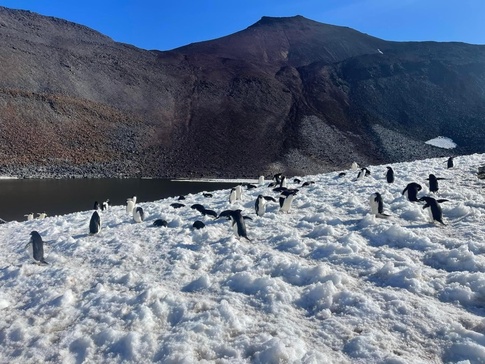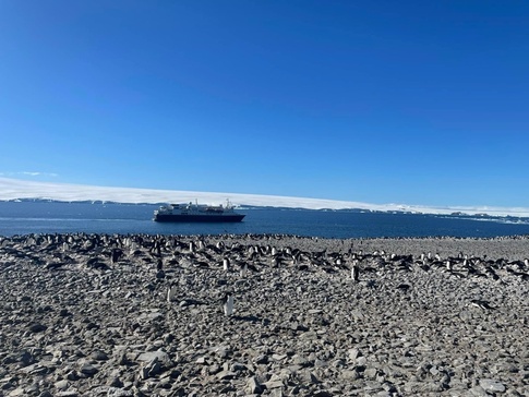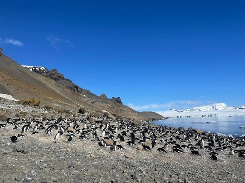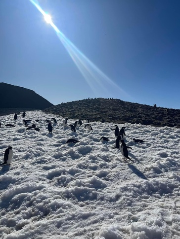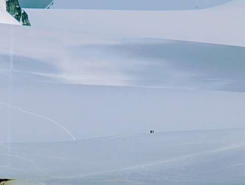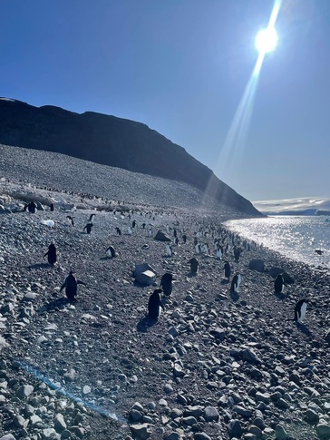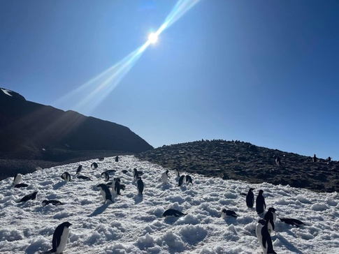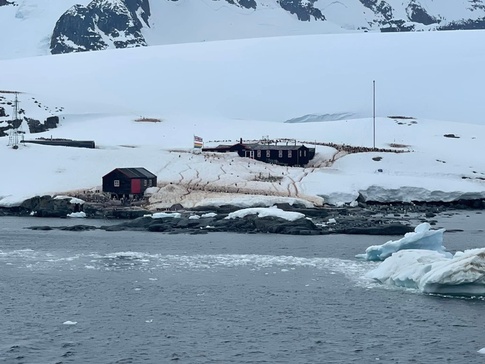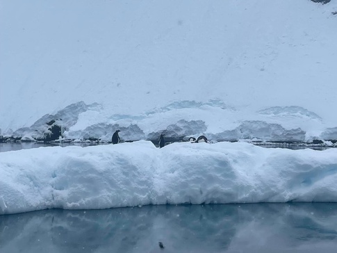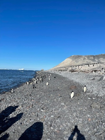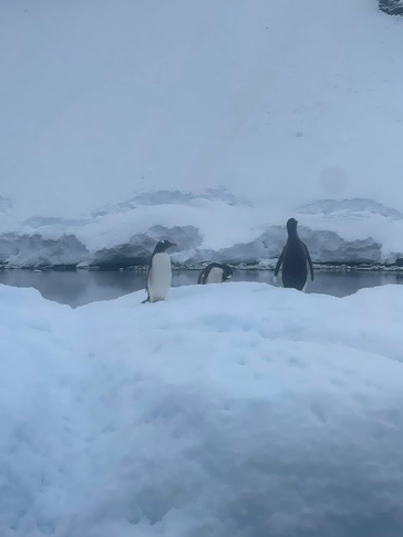paradise bay 这里有很 多的人类科考站。其他种类的企鹅和海鸥海豹都生活在海边非常靠近人类生活区。但是帝企鹅是却选择不依靠人类的生活垃圾生态圈而是为了下一代的安全栖息在更深在的内陆。 于是只能看见天地之间这排身影。目光转向眼前南极海岸边的人类科考站,我们人类何尝不是离开自己的舒适圈,用勇气、付出和牺牲精神来探索未来?南极这里天气恶略不说,没有网络,饮食上也完全依赖于外界输送。科考站附近有很多的阿德利企鹅和海豹。可以说出门就全部都是红色的鸟屎,真的非常非常非常恶臭的生活环境。这样的生活不是几天,而是几个月、半年、甚至更久 —— 这些日子里简简单单的洗个热水澡都会是个奢侈。