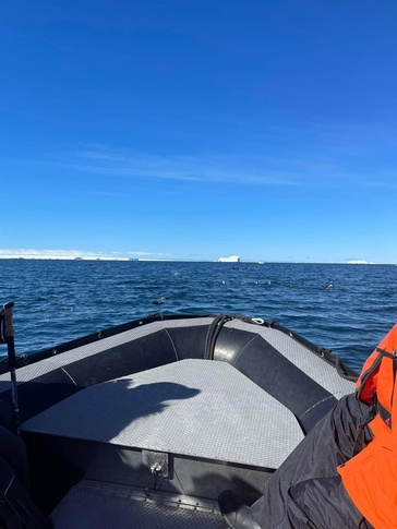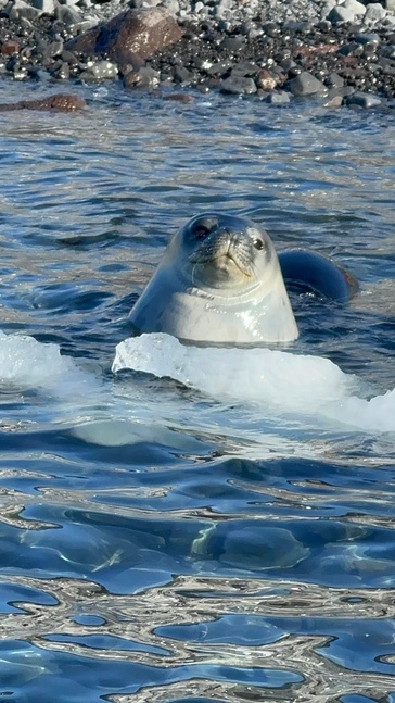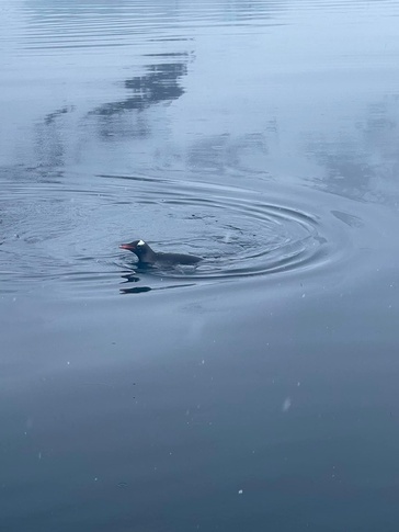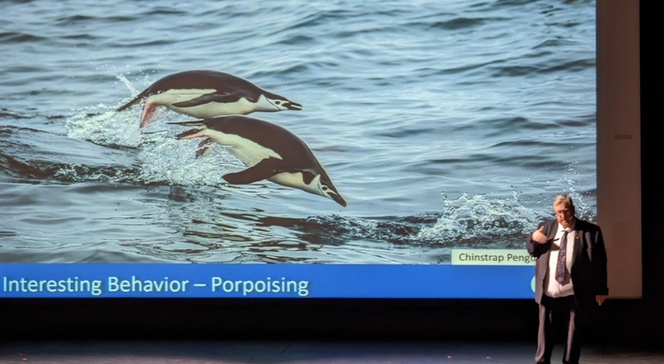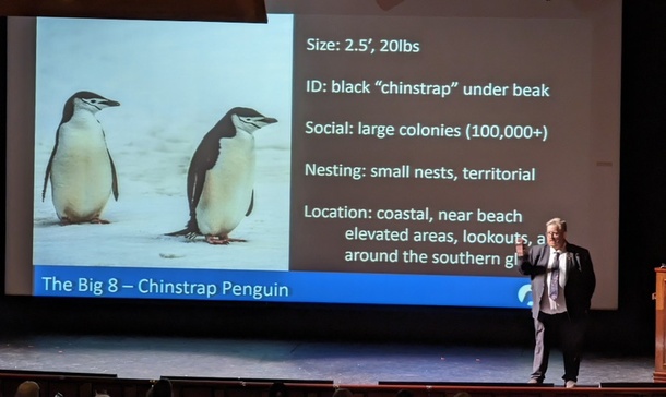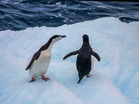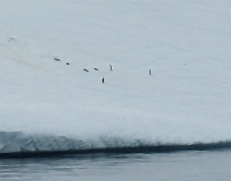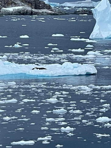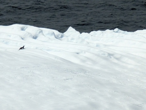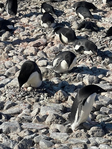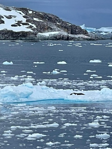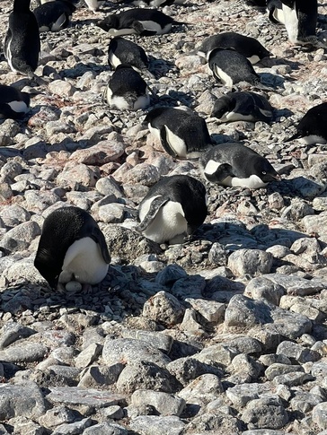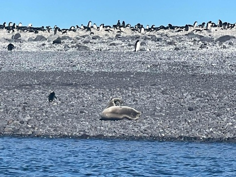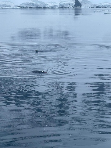 企鹅的生活很不容易。孵化季节父母一方在地上站着脚底下放着两个蛋默默的站几天来孵化小宝宝。(图 1) 一方在海里拼命吃吃饱了好回来换下自己的配偶。(图 2 )在船上就可以见到海里匆忙进食的企鹅。如果没吃饱,撑不到下次配偶回来换岗的日子,成年企鹅和小宝宝都会冻饿而死。如果食物不够,海里进食的日子稍微一耽搁,那路上等待的家人可能就会饥寒交迫的死去。这个过程中,身边还有海豹,不论是海里还是陆地,海豹的食物都是企鹅。石子岸上晒太阳的海豹是危险的,它随时可能猎食经过的企鹅,特别是企鹅宝宝。海里的海豹是更危险的。岸上的海豹多是吃饱了晒太阳休息。海里的海豹可是实打实的在工作状态全速开动进食的。(图3 5 ) 往往企鹅下海是排队下去的。企鹅下海之前不知道水里的情况是怎样的。所以第一个跳的叫做 “达尔文进化论牺牲者” ,它跳下去以后,其它企鹅等一下,没看见水变成红色血泛上来,它们就知道底下大概率没有饥饿的鲸鱼或者海豹在等着点心。然后就都扑通扑通的跳下去。