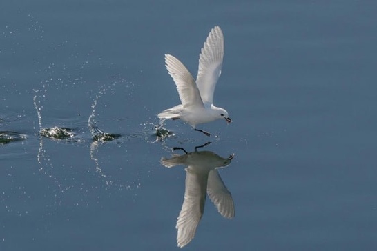 雪海燕,是一种在南极地区生活的海燕类的鸟类。体长 36-41 厘米,翼展 76-79 厘米,体型似信天翁,脚蓝灰色,除眼睛前面和嘴为黑色外,一身洁白的羽毛,外型和个体十分像鸽子,故名南极雪鸽,也是南极最为美丽的一种海鸟。